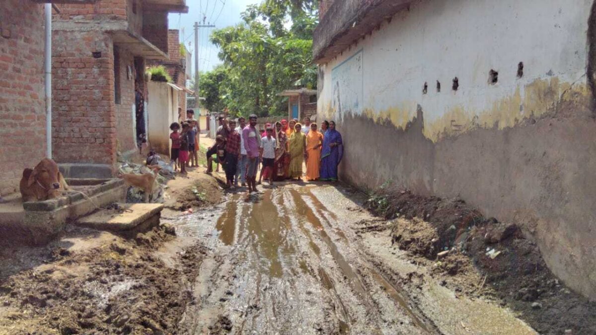 चिह्नित स्थल पर ढक्कनदार नाला निर्माण नहीं होने से ग्रामीणों में आक्रोश