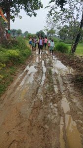 रोड नहीं तो वोट नहीं का नारा लगाते हुए डूमरहार गांव के ग्रामीणों ने किया विरोध प्रदर्शन