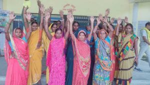 रास्ते की मांग को लेकर महिलाओं ने प्रखंड मुख्यालय में किया प्रदर्शन
