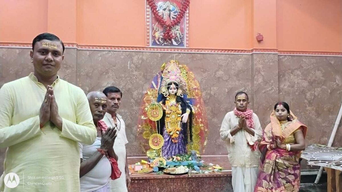 कटोरिया. कटोरिया नगर पंचायत अंतर्गत राधानगर बाजार स्थित दुर्गा मंदिर में सोमवार को अश्विन मास की पूर्णिमा यानि शरद पूर्णिमा के अवसर पर लखी पूजा समारोह का आयोजन हुआ. इस क्रम में मां लक्ष्मी (लखी ) की प्रतिमा प्रतिष्ठापित कर बंगाली समुदाय व स्थानीय श्रद्धालुओं ने पूरी श्रद्धा व भक्ति के साथ पूजा-अर्चना की. मंदिर में पंडित शशिकांत पांडेय द्वारा वैदिक मंत्रोच्चार व शंख ध्वनि के बीच प्रतिमा की प्राण प्रतिष्ठा व पूजन किया गया. जिसमें मठपति दुर्लभ नाग ने मुख्य पूजा में भाग लिया. इस क्रम में बंगाली समाज की महिला श्रद्धालुओं ने अपने-अपने घरों में भी पूजा की. लखी पूजा को लेकर राधानगर बाजार के बंगाली बहुल क्षेत्र में काफी उत्साह व उमंग का माहौल कायम रहा. यहां प्रत्येक वर्ष बंगाली समाज के लोग काफी श्रद्धा के साथ मां लखी की पूजा को करते हैं. बंगाली समाज की व्रतधारी महिलाओं ने कहा कि लखी मां की पूजा श्रद्धा से करने से घर में हमेशा सुख-शांति व समृद्धि बनी रहती है. मां की पूजा में केला, सेव, बतासा, पेड़ा, लड्डू, खीर का भोग लगा कर भक्तों के बीच प्रसाद का वितरण किया गया. लखी पूजा कार्यक्रम में प्रमुख रूप से दुर्लभ नाग, अबोध चन्द्र नाग, शिवभक्त शिक्षाविद चंदन गुप्ता, भवानी नाग, संतोष नाग, सुनील नाग, कालाचंद्र नाग, चंडी नाग, सोनेलाल नाग, अरुण नाग, विशु नाग, काशीनाथ नाग, संजीव नाग, सुमन नाग, तापस नाग एवं समस्त राधानगर समाज के लोग सम्मलित हुए.