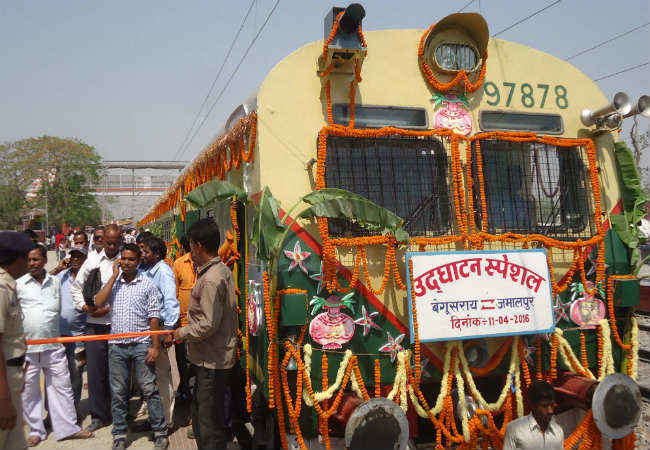 पहले दिन इस ट्रेन को रेलवे ने उद्घाटन स्पेशल ट्रेन का नाम दिया था.हालांकि औपचारिक सेवा मंगलवार से शुरू होगी. दोपहर एक बजे यह उद्घाटन स्पेशल ट्रेन मुंगेर पुल से गुजर कर मुंगेर स्टेशन पहुंची. स्थानीय लोगों ने रेल राज्य मंत्री का जोरदार स्वागत किया. ट्रेन के पीछे वाले कोच में भाजपा नेता सुशील कुमार मोदी व प्रेम कुमार भी कार्यकर्ताओं के साथ मौजूद थे.
