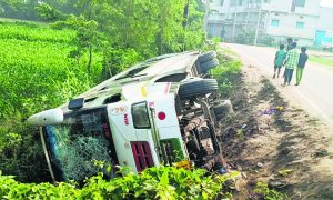 तेघड़ा. तेघड़ा थाना क्षेत्र में बरात से भड़ी बस का अनियंत्रित होकर गड्ढ़े में पलटने से अफरा तफरी का माहौल हो गया. उक्त घटना में बस में सवार लगभग सभी बराती के घायल हो गये हैं. घटना रविवार की देर रात लगभग 12 बजे तेघड़ा थाना क्षेत्र अंतर्गत अयोध्या चौक के पास की बताई जा रही है. जानकारी के मुताबिक बस में सवार 50 बरातियों में से 40 बरातियों के घायल हो जाने की सूचना है. जिसमें सात बरातियों की हालत गंभीर बतायी जा रही है. स्थानीय लोगों के मुताबिक बरात वैशाली जिले के सहदेई बुजुर्ग के वाजितपुर से अधारपुर पंचायत के वार्ड आठ अशोक पंडित की पुत्री की शादी में आ रही थी. घटना की सूचना मिलने पर शादी का माहौल गम में तब्दील हो गया. घटना की सूचना मिलते ही लड़की पक्ष के परिजन घटनास्थल पर पहुंचकर स्थानीय लोगों की मदद से किसी तरह गड्ढ़े में पलटी बस में घायल सभी बरातियों को किसी तरह बस से बाहर निकाले. घायल सभी बरातियों को इलाज के लिए के लिए तेघड़ा अनुमंडल अस्पताल में भर्ती कराया गया. वहीं घटना की सूचना मिलते ही तेघड़ा थाना की गश्ती टीम घटनास्थल पर पहुंची. तेघड़ा अनुमंडल अस्पताल में डॉक्टरों की टीम के द्वारा घायल सभी बरातियों का इलाज किया गया. जिसमें सात बरातियों की स्थिति गंभीर देखते हुए उसे बेहतर इलाज के लिए बेगूसराय सदर अस्पताल रेफर कर दिया गया. इधर अयोध्या गांव में शादी का माहौल गम में तब्दील हो गया. किसी तरह जल्दीबाजी में लड़की की शादी कर लड़की की विदाई रस्म पूरा किया गया और घायल सभी बरातियों को निजी वाहन से वापस वैशाली जिला के सहदेव बुजुर्ग भेजा गया.