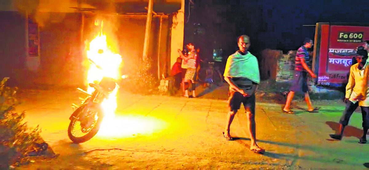 पांच लाख रुपये रंगदारी नहीं देने पर हथियार से लैस बदमाशों ने बाइक में लगायी आग, घटना के बाद इलाके में दहशत