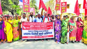 होली के दिन वार्ड नंबर 44, नया टोला वाजिदपुर में भाकपा (माले) कार्यकर्ता कॉमरेड कारेलाल यादव के घर पर बदमाशों द्वारा किये गये हमले के खिलाफ भाकपा (माले) ने शहर में अपराध विरोधी विशाल मार्च का आयोजन किया.