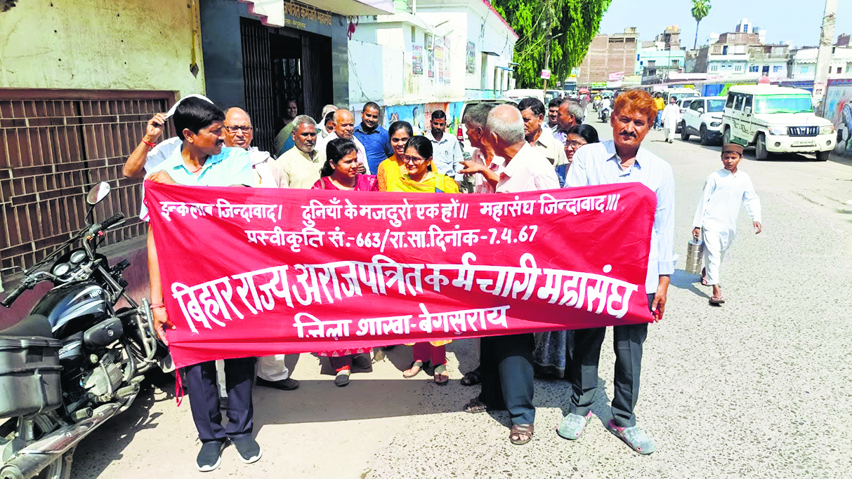 बेगूसराय. अखिल भारतीय राज्य सरकारी कर्मचारी महासंघ के निर्णय अनुसार एवं राज्य महासंघ के आह्वान पर 20 मई को एक दिवसीय राष्ट्रव्यापी हड़ताल को लेकर बिहार राज्य अराजपत्रित कर्मचारी महासंघ जिला शाखा बेगूसराय द्वारा जिला पदाधिकारी के समक्ष प्रदर्शन के माध्यम से उक्त हड़ताल की सूचना जिला पदाधिकारी को दी गयी. प्रदर्शन में शामिल कर्मचारी झंडा बैनर के साथ हड़ताल को सफल बनाने एवं स्थानीय मांगों को लेकर नारा लगा रहे थे. प्रदर्शन सभा को संबोधित करते हुए अखिल भारतीय राज्य सरकारी कर्मचारी महासंघ के राष्ट्रीय कोषाध्यक्ष सह राज्य महासंघ के सम्मानित अध्यक्ष शशिकांत राय ने कहा कि 18 मार्च 2025 को दिल्ली के प्यारेलाल भवन में देश के प्रमुख 10 राष्ट्रीय ट्रेड यूनियन एवं स्वतंत्र सेवा संगठन की संयुक्त कन्वेंशन हुआ. जिसमें सरकार की कॉर्पोरेट पक्षी, पूंजीपति के हित में एवं देश विरोधी, कर्मचारी विरोधी,मजदूर विरोधी कार्रवाई, 19 श्रम कानून को हटाकर केंद्रीय सरकार ने चार श्रम कानून की वापसी, श्रम कानून में मजदूर एवं कर्मचारी विरोधी नीति, सामूहिक सौदेबाजी का अधिकार, न्यूनतम मजदूरी,जॉब की गारंटी, यूपीए, पीएमएलए,भारतीय न्याय संहिता के द्वारा मजदूर कर्मचारियों के संघर्ष को आपराधिक कानून बनाने की केंद्र सरकार की नीति, एनपीएस यूपीएस की जगह सबों को पुराना पेंशन देने, ठेका संविदा मानदेय आउटसोर्सिंग दैनिक वेतन पर बहाल कर्मियों की सेवा नियमित करने, सरकारी क्षेत्र में लाखों रिक्त पड़े पद पर बेरोजगारों की बहाली, सहित अन्य बिंदुओं को लेकर 20 मई को पूरे देश सहित जिले के कर्मचारी हड़ताल पर रहेगे. इस जिले के भी अराजपत्रित कर्मचारी उक्त हडताल में शामिल रहेंगे. जिला मंत्री मोहन मुरारी ने कहा कि उक्त हड़ताल को सफल बनाने हेतु पूरे जिला में सघन अभियान, प्रखंड, अनुमंडल सहित सभी कार्यालयों कन्वेंशन, मीटिंग, सभा के द्वारा कर्मियों को जागरूक करते हुए उक्त हड़ताल को सफल बनाया जायेगा. महासंघ का एक प्रतिनिधि मंडल कर्मचारियों की समस्याओं को लेकर जिला पदाधिकारी से वार्ता किया. वार्ता के क्रम में स्थानांतरण पर रोक लगाने सरकारी निर्देश के आलोक में कर्मियों से कार्यालय अवधि में कार्य लेने, कार्यालय अवधि के बावजूद देर रात तक कार्य लिए जाने, मजदूर दिवस एवं अन्य छुट्टियों में भी कार्य लेने पर रोक लगाने आदि मुद्दा को उठाया गया. जिला महासंघ की कार्यसमिति की बैठक कर इस पर आगे की रणनीति पर विचार किया जायेगा. इस अवसर पर एआइएसजीइएफ के राष्ट्रीय कोषाध्यक्ष सह राज्य महासंघ के सम्मानित अध्यक्ष शशिकांत राय, जिला मंत्री मोहन मुरारी, शंकर मोची, कौशलेंद्र कुमार, सविता कुमारी, सुनील कुमार, रामानंद सागर, अनिल गुप्ता, अनुराग कुमार, सिकंदर 