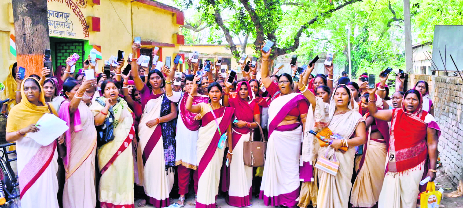 भगवानपुर. प्रखंड मुख्यालय स्थित बाल विकास परियोजना कार्यालय के समक्ष सोमवार को बिहार राज्य आंगनबाड़ी संयुक्त कर्मचारी यूनियन के बैनर तले संघ के जिला सचिव अंजली कुमारी के नेतृत्व में दर्जनों आंगनबाड़ी सेविकाओं ने एक दिवसीय धरना प्रदर्शन किया. धरना के माध्यम से उपस्थित सेविकाओं ने कहा कि सरकार के द्वारा वर्ष 2018-19 में मोबाइल दिया गया था, जो मोबाइल फोन अब खराब पड़ा हुआ है. जिसके कारण एफआरएस के माध्यम से टीएचआर नहीं हो पायेगा. उपस्थित सेविकाओं ने पूर्व कि भांति टीएचआर वितरण करने व नए गुणवत्तापूर्ण मोबाइल फोन देने की मांग प्रशासन से किया. धरना के उपरांत संघ के सेविकाओं के प्रतिनिधि मंडल कार्यालय में उपस्थित प्रखंड समन्वयक मौसमी कुमारी को अपनी मांग पत्र सौंपते हुए सभी सेविकाओं ने अपनी अपनी मोबाइल फोन जमा करने की बात कही. वहीं प्रखंड समन्वयक मौसमी कुमारी ने कहा कि मोबाइल फोन जमा करने का आदेश नहीं है. मौके पर सेविका संघ के प्रखंड अध्यक्ष मंजू वर्णवाल, सचिव चमन आरा, पूर्व प्रखंड अध्यक्ष अर्चना चौधरी, नीलम कुमारी, रामा कुमारी, गुड़िया कुमारी, हीरा कुमारी, मंजू कुमारी, मधुमाला कुमारी सहित दर्जनों सेविका उपस्थित थे. प्रधानमंत्री सुरक्षित मातृत्व अभियान में 28 महिलाओं का किया गया स्वास्थ्य परीक्षण नावकोठी. प्रधानमंत्री सुरक्षित मातृत्व अभियान के तहत पीएचसी नावकोठी में गर्भवती महिलाओं के प्रसवपूर्व स्वास्थ्य जांच एवं परिवार कल्याण परामर्श शिविर का आयोजन सोमवार को किया गया. इसमें चिकित्सकों की टीम ने 28 गर्भवती महिलाओं के प्रसवपूर्व जांच की. इसके तहत गर्भवती महिलाओं की ऊंचाई, वजन, हिमोग्लोबीन, मूत्र, ब्लडप्रेशर, डायबिटीज, एचआइवी आदि की जांच की गयी. चिकित्सा पदाधिकारी डाॅ हिमांशु कुमार ने गर्भवती महिला को अपने भोजन में प्रोटीन युक्त तथा आयरन युक्त भोजन को शामिल करने की सलाह दी. इसके लिए नोनी का साग, रागी, पीले पके फल, दूध, मछली, कलेजी आदि को भोजन में लेना उपयुक्त बताया. प्रत्येक माह नियमित जांच कराने की सलाह दी गयी. सुरक्षित जच्चा बच्चा व सुरक्षित भविष्य के लिए यह जांच आवश्यक है. इस अवस्था में गर्भवती महिलाओं को अपने भोजन में सभी पोषक तत्वों को शामिल करने, नियमित स्वास्थ्य जांच कराने, सुरक्षित संस्थागत प्रसव कराने, कम से कम दो घंटे आराम करने की सलाह दी गयी. सभी लाभुकों को कैलशियम, आयरन की गोली दी गयी. दो बच्चों के बीच अंतराल रखने के लिए अस्थायी गर्भ निरोधक साधन में कंडोम अंतरा, छाया आदि का वितरण किया गया. मौके पर लैब टेक्नीशियन पंकज कुमार जोशी, काउंसलर राजकुमार सिन्हा, एएनएम विश्व भारती, रेणु कुमारी, नंदन कुमारी, मोनी कुमारी सहित दर्जनाधिक आशा कार्यकर्ता, लाभुक आदि मौजूद थे.