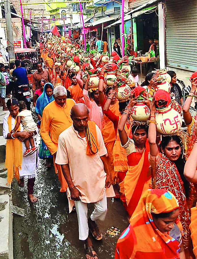 साहेबपुरकमाल. शारदीय नवरात्र के अवसर पर कुरहा गांव में भव्य कलश शोभायात्रा निकाली गई. गाजे-बाजे के बीच 501 कुंवारी कन्याओं ने सिर पर कलश धारण कर गायत्री मंदिर से दुर्गा मंदिर तक पदयात्रा की. शोभायात्रा के दौरान “जय माता दी ” के जयकारों से पूरा क्षेत्र गुंजायमान हो उठा. कलश शोभायात्रा के साथ ही सात दिवसीय देवी भागवत कथा का भी शुभारंभ हुआ. कथा का उद्घाटन साहेबपुरकमाल पूर्वी पंचायत की मुखिया संजना देवी ने किया. हरिद्वार से आए कथावाचक निवेश तिवारी ने प्रथम दिन संगीतमय देवी भागवत प्रसंग की प्रस्तुति दी, जिससे श्रद्धालु भावविभोर हो उठे. कथा के प्रथम दिन बड़ी संख्या में श्रद्धालु एकत्र हुए. इस आयोजन ने कुरहा गांव में उत्साह और भक्तिमय माहौल उत्पन्न किया है. कथावाचक ने बताया कि नवरात्र के नौ दिनों तक भक्ति और आस्था से ब्रत करने से जीवन में सुख, समृद्धि और निरोगता आती है तथा मनवांछित फल प्राप्त होते हैं. भागवत कथा के माध्यम से श्रद्धालु अध्यात्मिक ज्ञान प्राप्त कर जीवन को सफल बना रहे हैं. यह कार्यक्रम दुर्गा पूजा के महत्व को और बढ़ा रहा है.