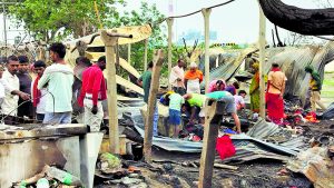 बीती रात आंधी-पानी के दौरान राजेन्द्र पुल स्टेशन के समीप बिजली की शार्ट सर्किट से निकली चिंगारी ने एनएच-31 किनारे बसे गरीबों के लगभग एक दर्जन आशियाने और दुकान को राख के ढ़ेर में बदल दिया.