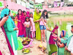 व्रतियों ने नदियों व तालाबों में चैती छठ पर अस्ताचलगामी सूर्य को दिया अर्घ