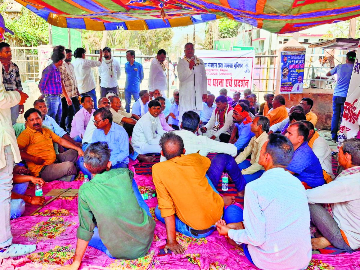 विभिन्न मार्गों को लेकर मोबाइल टावर कर्मियों ने समाहरणालय गेट पर दिया धरना