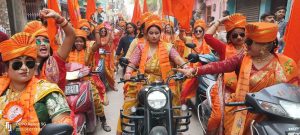 बेतिया. श्री राम जन्मोत्सव एवं शोभायात्रा आयोजन समिति के द्वारा सोमवार को भव्य शोभा यात्रा का आयोजन किया गया. श्री राम सनातन सेना के तत्वावधान में आयोजित इस शोभायात्रा में हजारों की संख्या में विभिन्न आयु वर्ग के लोगों ने जय श्री राम का जयकारा लगाया. ढोल नगाड़े, गाजे बाजे और दर्जनों घोड़ों के साथ मां काली धाम से निकली इस शोभायात्रा में भगवा ध्वज और भगवा वस्त्र के साथ महिला पुरुष शामिल रहें. शोभायात्रा का विशेष आकर्षण भगवा वस्त्र पहनी और ब्लैक गॉगल्स लगाई स्कूटी सवार महिलायें तथा 21 घोड़ों पर सवार रानी लक्ष्मीबाई का रूप धरी युवतियां थी. मां काली धाम मंदिर परिसर से निकल कर नया बाजार चौक, गैस लाल चौक, द्वारदेवी चौक, राजगुरु चौक, चर्च रोड, तीन लालटेन, जनता सिनेमा चौक, कविवर नेपाली पथ, सोआ बाबू चौक, संत कबीर चौक, राज देवड़ी होते हुए वापस मां काली धाम पहुंची. शोभायात्रा के पूर्व भंडारा तथा अखंड रामायण पाठ का भी आयोजन किया गया था.