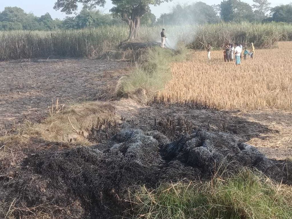 गन्ना के खेत में लगी आग से लाखों रुपये का गन्ने का फसल जलकर राख