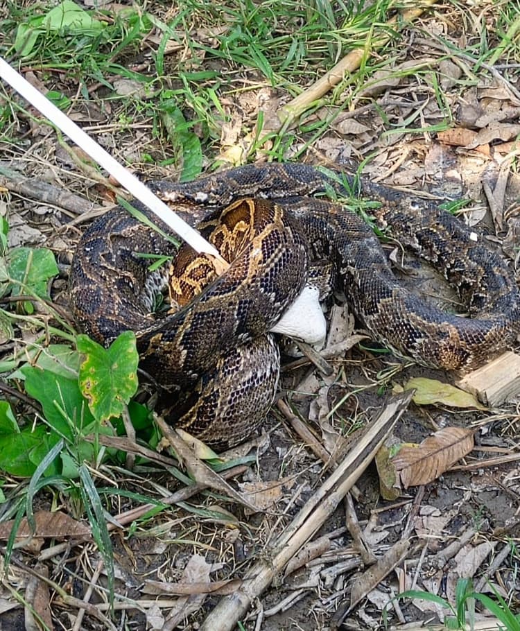 हरनाटांड़. रविवार की देर शाम नयागांव-रामपुर पंचायत के रामपुर मल्लाही टोला गांव के छठ्ठू साहनी के घर के समीप एक विशालकाय अजगर रेंगते हुए पहुंच गया. उसको देखने के बाद लोगों व बच्चों में अफरा-तफरी का माहौल बन गया. स्थानीय लोगों ने इसकी सूचना वन विभाग की टीम को दिया. इस सूचना को गंभीरता से लेते हुए रामपुर वन परिसर के वनरक्षी गौरीशंकर दुबे के नेतृत्व में वन कर्मियों की टीम रामपुर मल्लाही टोला गांव में पहुंची और अजगर का सफलतापूर्वक रेस्क्यू कर लिया. इस बाबत मदनपुर वन प्रक्षेत्र अधिकारी बजेंद्र कुमार ने बताया कि बरसात व गंडक नदी में बाढ़ जंगल के निचले हिस्से में पानी घुस गया है. कारण कई जानवर सुरक्षित अधिवास की तलाश में रिहायशी क्षेत्रों की ओर चले जाते है. घटना के बाद वन विभाग की टीम ने जंगल से सीमावर्ती क्षेत्रों के ग्रामीणों को जंगल से भटककर आने वाले जानवरों से सावधान रहने की अपील की. उन्होंने कहा कि जंगल से कोई भी वन्यजीव रिहायशी क्षेत्रों में दिखे तथा ऐसी किसी भी स्थिति में तुरंत विभाग को सूचित करने की सलाह दे. वन कर्मियों ने बैंडेड करैत सांप का रेस्क्यू कर जंगल में छोड़ा हरनाटांड़. रविवार की रात नयागांव-रामपुर पंचायत के रामपुर चेक पोस्ट निवासी धर्मेंद्र गिरी के घर में एक बैंडेड करैत सांप घुस गया था. जिसको देख घर की महिलाएं व बच्चों में भगदड़ मच गयी. बच्चों ने रामपुर वन चेक पोस्ट पर वन कर्मियों की सूचना दिया. जिसको गंभीरता से लेते हुए रामपुर वन परिसर के वनरक्षी गौरीशंकर दुबे के नेतृत्व में वन कर्मियों के साथ पहुंचे वन कर्मियों ने घर में घुसकर बैंडेड करैत सांप को रेस्क्यू किया. सांप को मदनपुर वन प्रक्षेत्र के जंगल में सुरक्षित छोड़ दिया गया. घर में अजगर को देख मची अफरा-तफरी,रेस्क्यू कर वीटीआर में छोड़ा गया वाल्मीकिनगर. सोमवार की सुबह थाना क्षेत्र के भरियानी गांव निवासी संतोष जायसवाल के नवनिर्मित घर में एक विशालकाय अजगर वन क्षेत्र से निकल कर जा घुसा. जिसे देखकर घर वालों में अफरा तफरी मच गई. तत्काल इसकी सूचना वन कार्यालय को दी गई.सूचना पर पहुंचे स्नेक कैचरों की टीम ने कड़ी मशक्कत के बाद लगभग छह फुट लंबा अजगर का सफल रेस्क्यू कर वीटीआर के चूलभट्टा के जंगल में छोड़ दिया गया.इस बाबत जानकारी देते हुए वनपाल सोनू कुमार ने बताया कि भरियानी गांव से एक अजगर का रेस्क्यू कर वन क्षेत्र में सुरक्षित छोड़ दिया गया है.