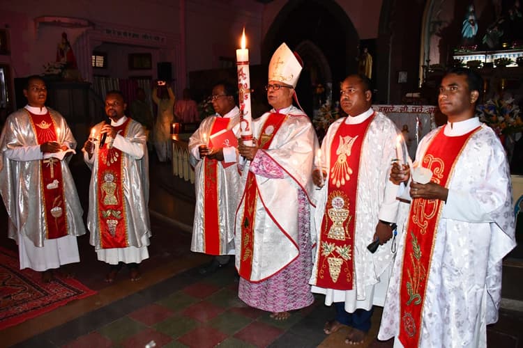 Bettiah : बेतिया . जीसस इज राइजन, अर्थात यीशु जी उठे हैं. अगर प्रभु यीशु मृत्यु के पश्चात पुनः जीवित नहीं होते, तो हम सब का जीवन नहीं होता शनिवार की देर रात नगर के महागिरजाघर नेटिविटी ऑफ द ब्लेस्ड वर्जिन मेरी में आयोजित पास्का जागरण अर्थात ईस्टर के समारोही मिस्सा को संबोधित करते हुए बेतिया धर्मप्रांत के धर्माध्यक्ष बिशप पीटर सेवास्टियन गोवियस ने उक्त बातें कहीं. उन्होंने कहा कि पास्का पर्व (ईस्टर) हमें मुख्य रूप से चार महत्वपूर्ण बातें बताती है. पहला यह कि अगर प्रभु यीशु मृत्यु के पश्चात तीसरे दिन फिर जी नहीं उठते तो हम सबका जीवन नहीं होता. दूसरा यह कि पास्का पर्व हम सबके जीवन की गारंटी है. तीसरा यह पर्व हमें आशा, सांत्वना और भरोसा देता है तथा चौथा हमें यह विश्वास है कि हमारी प्रार्थनाएं सुनी जाती है. मिस्सा के पूर्व बिशप द्वारा आग पर आशीष देकर पास्का मोमबत्ती को जलाया गया. पुरोहितों ने कहा कि पास्का जागरण समारोह में मुख्य रूप से आग और पानी पर आशीष दी जाती है. क्योंकि हमारा मानना है कि प्रभु यीशु संसार की ज्योति है. आग में प्रकाश होता है और वह गंदगियों को जलाकर हमारे जीवन को आलोकित करती है. पानी उन कुरीतियों को धोने का प्रयास करती हैं जिसने हम सबको पापों में जकड़ रखा है. मिस्सा में श्रद्धालुओं द्वारा पास्का मोमबत्ती से अपनी मोमबत्तियां जलाकर प्रार्थनाएं की गई. क्वायर टीम के द्वारा गीतों व भजनों से पास्का जागरण समारोह भक्ति के रंग में रंगा रहा. चर्च की युथ टीम के द्वारा प्रदर्शित की गई आकर्षक झांकी के माध्यम से प्रभु यीशु के दोबारा जी उठने के दृश्य को प्रस्तुत किया गया.