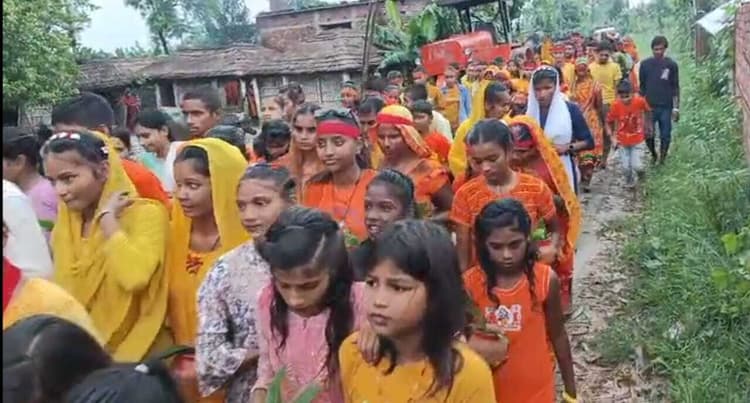 सावन मास के अंतिम सोमवारी को खैरवा पंचायत के गुलरिया में स्थित शिव मंदिर में जलाभिषेक के लिए करीब 300 कन्याओं, महिलाओं एवं शिव भक्तों द्वारा बररिहा नारायण दास के कुट्टी के पास गंडक नदी से जल भर कर लाया गया. इस दौरान सुबह से ही रिमझिम बारिश होती रही. वहीं शिव भक्त बारिश में भीगते हुए कतारबद्ध होकर पदयात्रा करते हुए नारायण दास के कुट्टी पर पहुंच कर जल भराई किया. साथ ही पुन: बारिश में भीगते हुए शिव मंदिर पहुंचकर भगवान शिव का जलाभिषेक किये. उक्त अवसर पर स्थानीय ग्रामीणों के सहयोग से शिव मंदिर पर भंडारा एवं शिव विवाह का कार्यक्रम भी रखा गया. जिसमें सीमावर्ती उत्तर प्रदेश से आये कलाकारों द्वारा शिव विवाह की मनोरम झांकी निकालते हुए भक्तिपूर्ण गीत संगीत प्रस्तुत किया गया. उक्त कार्यक्रम का आनंद लेने के लिए सैकड़ों लोगों की भीड़ उमड़ी रही.डिस्क्लेमर: यह प्रभात खबर समाचार पत्र की ऑटोमेटेड न्यूज फीड है. इसे प्रभात खबर डॉट कॉम की टीम ने संपादित नहीं किया है
