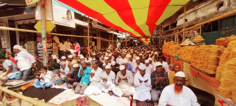 नरकटियागंज के जामा मस्जिद व अन्य मस्जिदों में शुक्रवार को माह ए रमजान के अंतिम जुमे पर अलविदा की नमाज अकीदतमंदों ने अदा की. जामा मस्जिद समेत अन्य मस्जिदों में वक्फ संशोधन बिल के खिलाफ काला बिल्ला लगाकर नमाज अदा की गयी. नमाज के बाद अकीदतमंदों ने मुल्क में अमन, शांति व भाईचारे को लेकर दुआएं मांगी. इस दौरान नरकटियागंज जामे मस्जिद के इमाम कारी तौकीर कासमी ने नमाज से पहले खिताब करते हुए कहा कि रमजान के पाक महीने की आखिरी जुमा अलविदा की नमाज अकीदत के साथ अदा करना फर्ज है. उन्होंने कहा कि पूरे एक माह तक माह ए रमजान का रोजा रोजेदारों ने रखा यह काबिले तारीफ़ है. कारी ने कहा कि माह ए रमजान रहमतें, बरकते व मगफिरत का महीना है. समाज सेवी मनीर आलम की ओर से जमा मस्जिद के पास धूप से बचाव को लेकर लंबा पंडाल का निर्माण कराया गया था. उन्होंने बताया कि 14 वर्षों से अलविदा की नमाज को संपन्न करने के लिए पंडाल का निर्माण कराते हैं. इधर नरकटियागंज जामा मस्जिद, शिवगंज मदीना मस्जिद, पुरानी बाजार में बेलाल मस्जिद, ईदगाह मस्जिद, नंदपुर, दिउलिया समेत अन्य मस्जिदों में अलविदा की नमाज अदा किया गया. इधर अलविदा की नमाज के मौके पर सभापति प्रतिनिधि सत्यम श्रीवास्तव, उपसभापति प्रतिनिधि संतोष राज, वार्ड पार्षद कृष्ण प्रसाद देवीलाल, मोहम्मद हसनैन, मोहम्मद क्यामुद्दीन, प्रतिनिधि अभिजीत आनंद, हरिशंकर प्रसाद, समाजसेवी मनीर आलम, विशाल गुप्ता, मोहम्मद अखलाक कासमी व इकबाल अहमद आदि मौजूद रहे. शिकारपुर थानाध्यक्ष अवनीश कुमार, अपर थानाध्यक्ष मिथिलेश कुमार अनुज कुमार समेत दर्जनभर पुलिस बल के जवान मौजूद रहे.