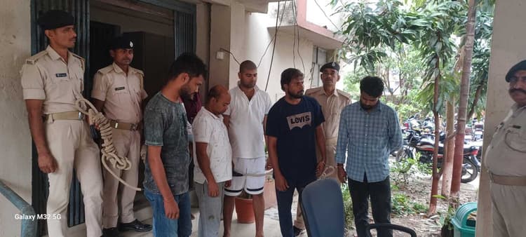 पटना तबादला होने की खुशी में नवीन कुमार दे रहा था पार्टी पटना, नालंदा व बेगूसराय से उसके दोस्त भी पहुंचे दारू छकने दो लीटर शराब व बियर की 27 खाली बोतलें बरामद जंगल की गश्ती छोड़ चल रही थी शराब की पार्टी फोटो:6. कैप्शन: गिरफ्तार शराबियों के साथ नौरंगिया थाना की पुलिस हरनाटांड़ (पचं) वाल्मीकि टाइगर रिजर्व के जंगल में मदनपुर वन प्रक्षेत्र के वनपाल के आवास में शराब पार्टी कर रहे चार वनपालों समेत नौ लोगों को बगहा एसडीपीओ ने छापेमापी कर गिरफ्तार कर लिया है. यह पार्टी वनपाल नवीन कुमार के पटना तबादला होने की खुशी में शनिवार रात वनपाल राजेश रोशन के आवास पर चल रही थी. बताया जा रहा है िक वाल्मीकिनगर में कागजी कार्रवाई और चार्ज हैंडओवर के सिलसिले में नवीन अपने दोस्तों के साथ पटना से आए थे. पार्टी में शराब भी परोसी गयी थी. नौरंगिया थानाध्यक्ष अजय कुमार ने बताया कि वरीय पदाधिकारी के आदेश पर नौरंगिया और लौकरिया की पुलिस ने वनपाल के आवास पर छापेमारी की. इसमें चार वनपाल समेत नौ लोगों को शराब के साथ गिरफ्तार किया गया. इनमें मदनपुर वन प्रक्षेत्र के वनपाल राजेश कुमार, नौरंगिया के वनपाल सोनू कुमार, चिउटाहा के वनपाल मुकेश कुमार मधुकर और पूर्व वनपाल नवीन कुमार शामिल हैं. इनके अलावा नालंदा के ज्ञान रंजन कुमार, अखिलेश कुमार, बसंत राज, बेगूसराय के संगम कुमार और पटना के शेखर कुमार को भी गिरफ्तार कर लिया गया. मौके से चार बीयर की भरी बोतल और 27 बोतल खाली बियर केन बरामद की गयी. इस मामले में बिहार मद्य निषेध कानून के तहत सभी के खिलाफ नौरंगिया थाने में प्राथमिकी दर्ज कर सभी को जेल भेज दिया गया है. कोट- सरकारी आवास पर शराब पार्टी नौ को पकड़ा गया है. इसमें शामिल चारों वनपालों पर वन विभाग जांच पड़ताल कर विभागीय कार्रवाई करेगा. डॉ. नेशामणि के. वन संरक्षक सह क्षेत्र निदेशक, वाल्मीकि टाइगर रिजर्व