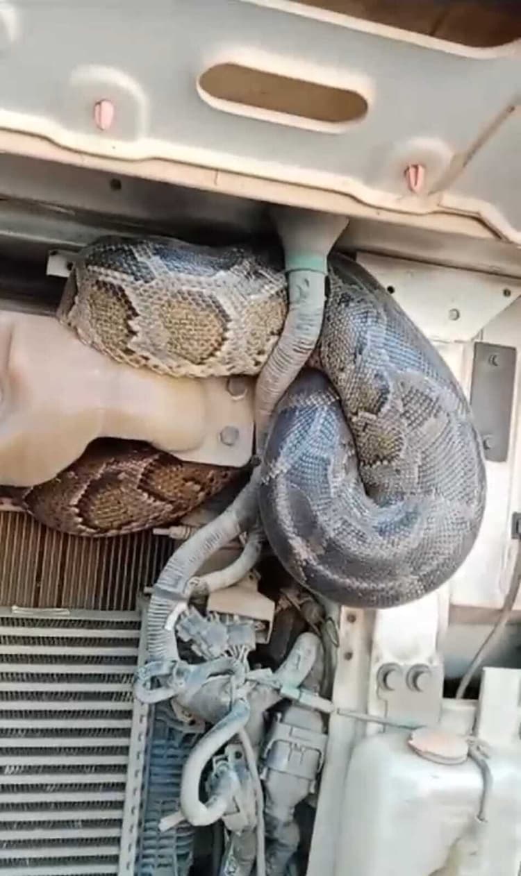 नरकटियागंज (पचं). कुशीनगर से ट्रक के इंजन में फंसकर एक बड़ा अजगर बुधवार को 98 किलोमीटर दूर नरकटियागंज के महुआवा गांव पहुंच गया. अजगर को देखने के लिए ग्रामीणों की भारी भीड़ जमा हो गयी. इंजन में फंसे अजगर को देख सभी लोग हैरान थे कि इंजन में कैसे यह अजगर घुस गया. महुआवा निवासी राजेश मिश्रा ने बताया कि सूचना पर रामनगर से वन विभाग की टीम मौके पर पहुंची और अजगर को रेस्क्यू कर ले गयी. रामनगर के रेंजर विजय प्रसाद ने बताया कि अजगर को रेस्क्यू कर लाया गया है, उसे जंगल में छोड़ दिया जाएगा. ग्रामीण राजेश मिश्रा ने बताया कि महुआवा एकडेरवा सड़क का निर्माण चल रहा है. निर्माण कार्य के लिए मेटल पत्थर कुशीनगर से ट्रक से आ रहा है. अजगर पता नहीं कैसे ट्रक के नीचे बैठ गया था. यहां पत्थर अनलोड करते समय मजदूरों की नजर उस पर पड़ी. शोरगुल सुनकर वह बोगी के नीचे से रेंगकर इंजन में जा घुसा. ग्रामीणों का कहना है कि हो सकता है कि रस्ते में ट्रक को चालक कुछ देर कहीं रोका हो और उसी समय अजगर ट्रक में घुस गया हो. ट्रक कुशीनगर से रतवल पुल के रास्ते नरकटियागंज पहुंचा था.