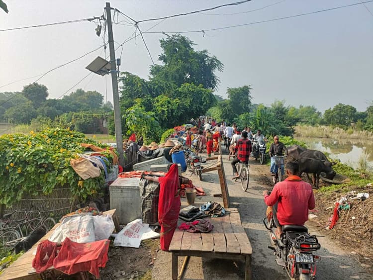 बेतिया/बैरिया . जिले के चखनी रजवटिया के समीप बीते दिन चंपारण तटबंध के क्षतिग्रस्त होने के बाद अभी उसकी मरम्मती का प्रयास शुरू भी नहीं हुआ कि सोमवार की देर रात बैरिया प्रखंड के पीडी रिंग बांध क्षतिग्रस्त होने से अफरातफरी मच गयी. इस रिंग बांध के टूटने के लिए ग्रामीणों ने विभागीय विफलता एवं लापरवाही का आरोप लगाया है. ग्रामीण गौरी शंकर कुमार, संदीप गुप्ता, राजू प्रसाद, रामजी पासवान, भागेलु साह का कहना है कि कटाव नियंत्रण कार्यालय के महज 500 मीटर की दूरी पर रिसाव हो रहा था. सूचना के बाद भी पदाधिकारी सक्रिय नहीं हुए और गंडक नदी बांध को अपने आगोश में ले लिया. इधर, रिंग बांध टूटने की खबर मिलते हीं चंपारण तटबंध एवं रिंग बांध के बीच में बसे गांवों के लोगों के बीच भगदड़ मच गया. सभी लोग अपने सामानों को लेकर सुरक्षित जगहों की तलाश में निकल गये. जिसको जो बन पाया वहीं लेकर निकल गया. रिंग बांध ध्वस्त होने से बैरिया प्रखंड के रनहा, बिनटोली, लालाटोला, नीतीशनगर, पखनाहा, जगीराहा, सिंगहीं समेत दर्जनों गांव गंडक नदी के बाढ़ के पानी के चपेट में आ गये है. गंडक नदी का पानी तेजी से निचले इलाकों में फैल रहा है. पीडी रिंग बांध एवं चंपारण तटबंध के बीच बसे गांवो के घरों में पानी फैलने लगा है. लोग अपने सामनों को उंचे स्थानों पर सुरक्षित रखने में जुटे हुए है. इस बीच तटबंध ध्वस्त होने की सूचना मिलते हीं एसडीएम डॉ विनोद कुमार, एसडीपीओ रजनीश कांत भी देर रात में हीं तटबंध पर पहुंचे और राहत कार्य आरंभ करवाया. इधर मंगलवार की सुबह जिलाधिकारी दिनेश कुमार राय, पुलिस अधीक्षक डॉ शौय सूमन ने भी प्रभावित स्थल एवं इलाके का दौरा किया. विभागीय अधिकारियों को हर हाल में राहत कार्य युद्धस्तर पर चलाने का निर्देश दिया गया है. विदित हो कि वर्ष 2003 में आयी भीषण बाढ़ में पीडी रिंग बांध ध्वस्त हो गया था. जिसका पुर्ननिर्माण वर्ष 2007 में पूर्ण हुआ. तबसे इस तटबंध पर कटावरोधी कार्य लगातार चलाये जाते रहे. ——————- इन गांवों में घुस रहा पानी ग्रामीणों ने बताया कि बांध के टूटने से उत्तरी पाटजीरवा, दक्षिण पटजीरवा, सूर्यपुर, पखनाहा, बलुआ रमपुरवा पंचायत के 50 गांव प्रभावित हो रहे हैं. पानी निचले इलाकों में फैल रहा है. ग्रामीणों ने पखनाहा बाजार तक पानी पहुंचने का दावा किया. ग्रामीणों ने बताया कि रात्रि करीब नौ बजे जल संसाधन विभाग द्वारा घोड़हिया में बनाए गए बाढ़ नियंत्रण कक्ष में प्रतिनियुक्ति अधिकारियों से यह बताया गया कि यहां से लगभग 600 मीटर की दूरी पर रिसाव हो रहा है, लेकिन वें देखने नहीं गए. ———————– चंपारण तटबंध पर बढ़ा दबाव, श्रमदान कर रहे ग्रामीण इधर रिंग बांध ध्वस्त होने के बाद चंपारण तटबंध पर दबाव बढ़ने की संभावना बढ़ गयी है. नतीजतन ग्रामीण भी किसी तरह चं