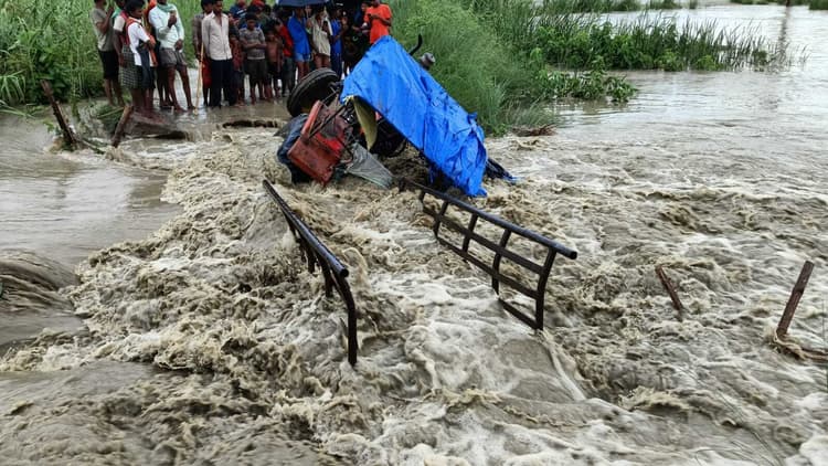बगहा/रामनगर. माॅनसून की पहली दस्तक के साथ ही पुलिया और सड़क क्षतिग्रस्त होने लगी है. पहाड़ी क्षेत्रों में लगातार हो रही बारिश के कारण गंडक च पहाड़ी नदी का जलस्तर बढ़ गया. जिससे पुलिया कमजोर हो गयी और उसमें दरारें पड़ गयी. इस स्थिति के कारण एक बड़ा हादसा होते-होते टल गया. जब मजदूरों को ले जा रहा एक ट्रैक्टर मसान नदी पर बनी अस्थाई पुलिया पर फंस गया. जोखिम में रहा मजदूरों की जान: रामनगर चीनी मिल से मजदूरों को ले जा रहा ट्रैक्टर नदी के बीच धारा में फंस गया. बताया जा रहा है कि गन्ना फसल की निराई करने के लिए रामनगर चीनी मिल से मजदूरों को लेकर एक ट्रैक्टर गोबर्धना थाना क्षेत्र के बलुआ गांव जा रहा था. इसी दौरान झमाझम बारिश के बाद सुखौड़, सिंगाहा व मसान नदी के जलस्तर में अचानक वृद्धि हो गयी. पुलिया के ऊपर से जब ट्रैक्टर गुजर रहा था तभी पानी के तेज बहाव के कारण अस्थाई पुलिया क्षतिग्रस्त हो गयी और ट्रैक्टर पानी की तेज धारा में फंस गया. मजदूरों ने किसी तरह अपनी जान बचाई. आधा दर्जन गांवों का संपर्क टूटा: माॅनसून की पहली बारिश में रामनगर की पहाड़ी नदी मसान ने अचानक रौद्र रूप ले लिया. रामनगर के बलुआ से चुड़िहरवा, डुमरी, पथरी, सिंगाई और दोन समेत दर्जनों गांवों का रास्ता बाधित हो गया है. गांवों के लोगों को आने-जाने में भारी मुश्किलों का सामना करना पड़ रहा है. दैनिक जरूरतों के सामान लाने और ले जाने में भी समस्या हो रही है, जिससे ग्रामीणों की परेशानी और बढ़ गयी है. ग्रामीण में दिखा आक्रोश: ग्रामीणों ने प्रशासन से त्वरित कार्रवाई की मांग की है. ताकि पुलिया और सड़क की मरम्मति जल्द से जल्द हो सके और आवागमन सुचारू रूप से चालू हो सके. उन्होंने चेतावनी दी है कि अगर समस्या का समाधान जल्द नहीं किया गया तो वे आंदोलन करने पर मजबूर होंगे. लोगों में काफी आक्रोश देखा गया.