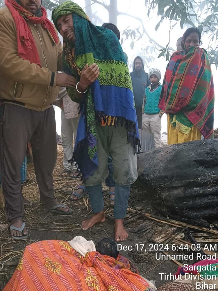 अमर कुमार, सिकटा . घड़ी में सोमवार की रात के करीब 10.30 बजे थे. गोपालपुर थाना क्षेत्र के डकाही गांव में बद्री राम की पत्नी सुगांती देवी अपनी बिटिया खुशबू के साथ अपने फूंस के घर में सोयीं थीं. मवेशियों के लिए घर में बगल में धुंईहर जलाकर बद्री भी घर में आकर लेटे थे. इसी दौरान घर से धुंआ उठता देख बद्री उठे और गाय की रस्सी खोलने चले गये. इधर, मां-बेटी को आग की भनक तक नहीं लगी और अचानक आग ने दोनों को आगोश में समेट लिया.