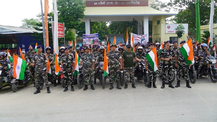 —- तिरंगे में सजीं नरकटियागंज की सड़कें, एसएसबी जवानों की 20 किमी लंबी बाइक रैली ने बढ़ाया उत्साह —– 79वें स्वतंत्रता दिवस पर 44 वाहिनी ने मनाया आजादी का अमृत महोत्सव नरकटियागंज . आजादी के 79वें वर्ष और आजादी का अमृत महोत्सव के तहत इंडो-नेपाल बॉर्डर के रखवाले सशस्त्र सीमा बल के जवान मंगलवार को पूरी तरह देशभक्ति के रंग में रंगे नजर आए. हर घर तिरंगा अभियान के अंतर्गत 44 वाहिनी एसएसबी नरकटियागंज ने भव्य मोटरसाइकिल तिरंगा रैली निकाली. जिसने पूरे इलाके को देशभक्ति की ऊर्जा से सराबोर कर दिया. इस दौरान भारत माता की जय, जय हिन्द के गगन भेदी नारों से सड़कें व गली मुहल्ले गूंज उठे. एसएसबी के कमांडेंट बलवंत सिंह नेगी के नेतृत्व में यह रैली 44 वाहिनी मुख्यालय से शुरू होकर ऐतिहासिक रामपुरवा अशोक स्तंभ तक पहुंची. लगभग 20 किलोमीटर की इस यात्रा में एसएसबी जवानों ने रास्ते में ग्रामीणों और स्कूली बच्चों को राष्ट्रध्वज के सम्मान और देशप्रेम का संदेश दिया. देशभक्ति गीतों और गगनभेदी नारों से गूंजती रैली शहीद चौक, नरकटियागंज चौक, पचरुखिया, पिपरा, अमौलवा, भितिहरवा, भतौरा, मेघौली, वेलवकोठी, बहुअरी, पिपरहा होते हुए रामपुरवा महादलित टोला तक पहुंची और फिर मुख्यालय लौटकर कार्यक्रम संपन्न हुई. इस मौके पर द्वितीय कमान अधिकारी नीरज कुमार थापा, उप कमांडेंट श. ज्ञानेंद्र कुमार, साशिन शर्मा, अजय कुमार सिन्हा, सहायक कमांडेंट (संचार) रियाश पी., निरीक्षक (सामान्य) मनोज कुमार सहित 44 वाहिनी और क्षेत्रक मुख्यालय बेतिया के 100 से अधिक अधिकारी व बलकर्मी मौजूद रहे.