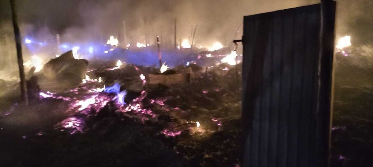 रानी दियरा नयनसुख नगर में बसे कटाव विस्थापितों की बस्ती में खाना बनाने के दौरान आग लगने से 10 घर जल कर राख हो गये.