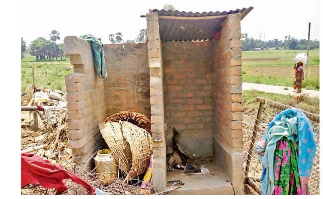 10 दिन में बना दिया गांव में शौचालय, छत के लिए नहीं आये ठेकेदार. ग्रामीण भोला मांझी कहते हैं कि सुबह-सुबह हमारे घर में कुछ लोग आये. हमसे कहा कि शौचालय निर्माण कराने आये हैं, कहां बना दे शौचालय. यह कहने के साथ ही लोगों ने हमारे घर के आगे निर्माण कार्य आरंभ कर दिया. दो घंटे में शौचालय की दीवार बना दी, टंकी खोद दी. दरवाजा भी जैसे-तैसे लगा दिया.