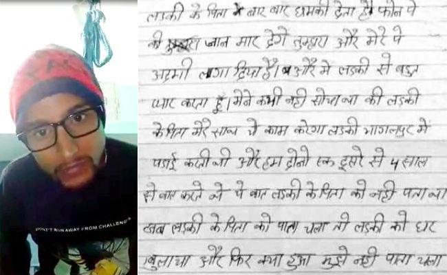 सुसाइड नोट लिख कर प्रेमिका के पिता पर लगाया जान से मारने कीधमकी देने का आरोप