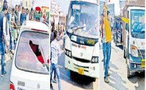 भागलपुर : ट्रेन रोकी, बस का शीशा तोड़ा, बैंक कराया बंद