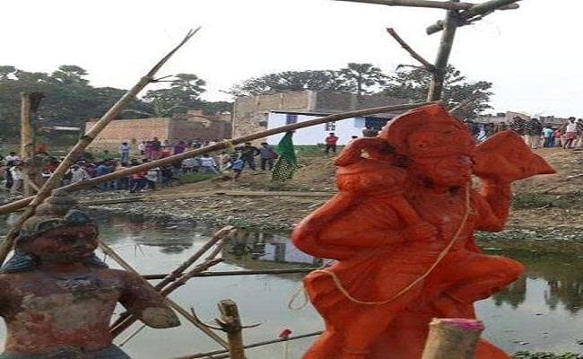 स्थानीय निवासियों का कहना है कि गुरुवार की सुबह अंबे पोखर के बीव में बने टापू पर करीब 50 साल पुराने हनुमान मंदिर में खंडित मूर्ति को हटाकर नयी मूर्ति लगाने की बात की जा रही थी. इसी दौरान बातचीत में शामिल दूसरे पक्ष के लोगों ने इसका विरोध किया. दूसरे पक्ष के इस विरोध के बाद ही इलाके में हनुमान जी के मंदिर को तोड़ने की अफवाह फैल गयी और वहां पर जन सैलाब उमड़ पड़ा.