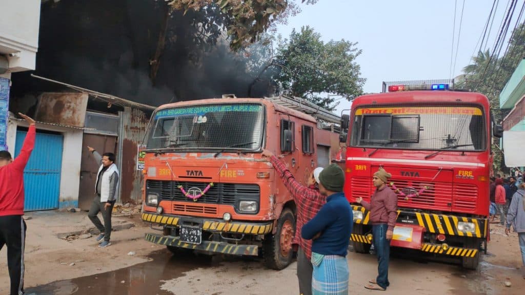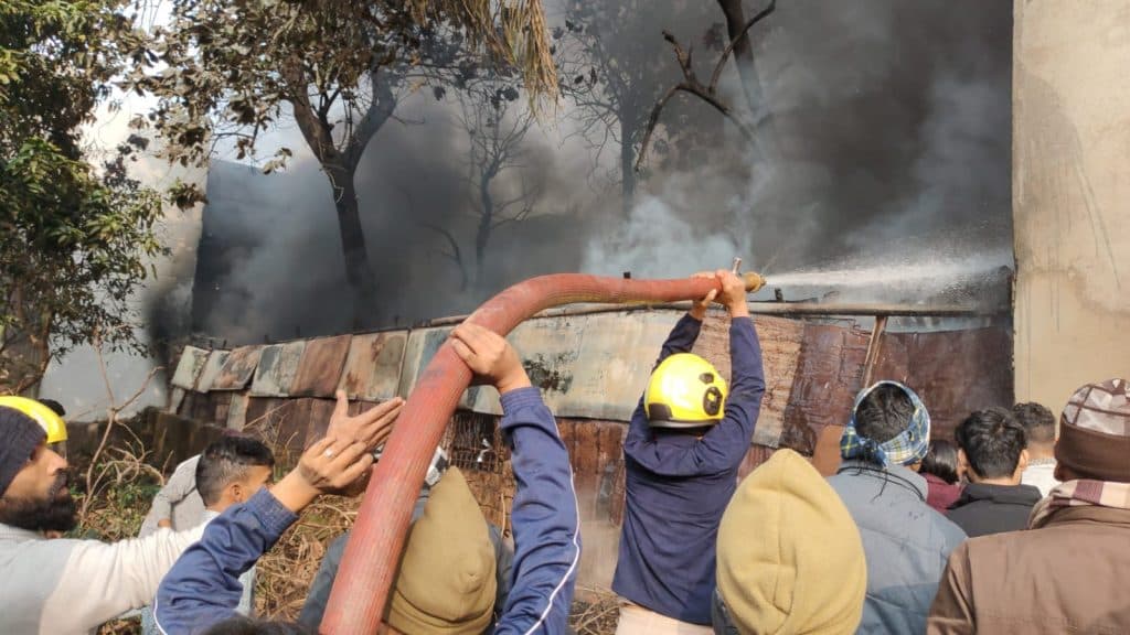 आग पर काबू पाने में जुटी फायर ब्रिगेड की टीम