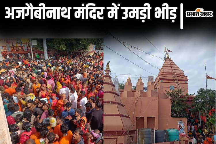 अजगैबीनाथ मंदिर में पूजा करने के लिए कांवरियों की भीड़ मंदिर के नीचे से कतार में खड़ी रही. लाइन में लगकर शिवभक्त मंदिर तक पहुंचे. यहां चढ़ाईनुमा सीढ़ी होकर श्रद्धालु मंदिर के गर्भगृह तक पहुंचते हैं.