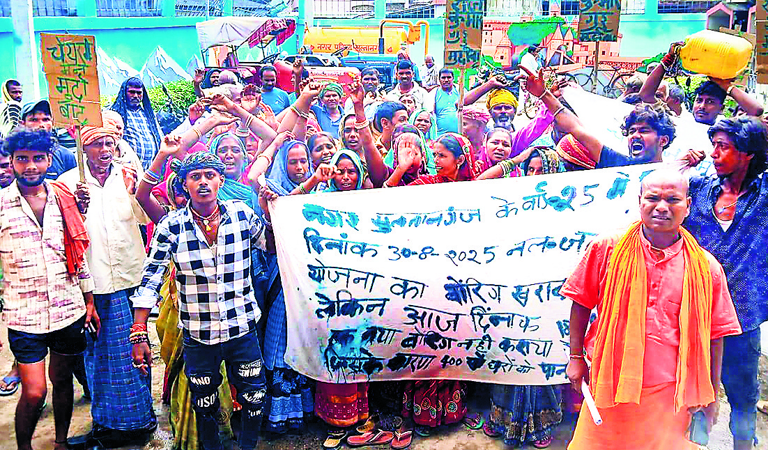 नगर परिषद क्षेत्र वार्ड 25 में पिछले 18 दिनों से जल नल योजना का बोरिंग खराब होने से 400 घरों में पानी की आपूर्ति ठप है. नाराज लोगों ने गुरुवार को नप कार्यालय पहुंच कर प्रदर्शन किया. प्रदर्शनकारियों ने हाथों में तख्तियां लेकर नारेबाजी की और नप के मुख्य गेट को बंद कर कर्मचारियों को बंधक बना लिया. प्रदर्शन का नेतृत्व वार्ड 25 के पार्षद कृष्ण कुमार कर रहे थे. उन्होंने बताया कि जल नल योजना का बोरिंग 30 अगस्त से खराब है और इसकी शिकायत नगर परिषद को तीन बार आवेदन देकर की जा चुकी है, लेकिन अभी तक बोरिंग की मरम्मत नहीं करवायी गयी है. पानी की किल्लत से लोग गंदा पानी पीने को मजबूर हैं, जिससे बीमारियों का खतरा बढ़ गया है. पार्षद ने चेतावनी दी कि यदि पानी की समस्या जल्द दूर नहीं हुई और किसी की मृत्यु होती है, तो इसकी पूरी जिम्मेदारी नप प्रशासन की होगी. उन्होंने आरोप लगाया कि राजनीति के कारण वार्ड के लोगों को परेशान किया जा रहा है. प्रदर्शन के दौरान नप कर्मियों और आक्रोशित लोगों में नोकझोंक हुई. सूचना पर थाना पुलिस मौके पर पहुंची और मामले को शांत कराया. नगर परिषद प्रशासन ने सहायक अभियंता व कनिष्ठ अभियंता को मौके पर भेजा, जिन्होंने दो दिन के भीतर खराब बोरिंग को ठीक करने और नया बोरिंग बजरंगबली स्थान पर लगाने का आश्वासन दिया. तत्काल राहत के रूप में वार्ड में पानी का टैंकर भेजने का आश्वासन दिया, जिसके बाद प्रदर्शनकारियों ने मुख्य गेट खोल दिया और स्थिति सामान्य हुई. मौके पर जनसंसद के संरक्षक अजीत कुमार ने प्रशासन की लापरवाही पर नाराजगी जतायी और कहा कि पानी जैसी मूलभूत सुविधा की अनदेखी अस्वीकार्य है. उन्होंने नगर प्रशासन से तुरंत कार्रवाई की मांग की. पार्षद ने चेतावनी दी कि यदि तय समय में समस्या का समाधान नहीं हुआ, तो मंगलवार 23 से अनशन पर बैठने को बाध्य होंगे. वार्ड पार्षद कृष्ण कुमार ने बताया कि कई बार इस समस्या की शिकायत की गयी, लेकिन अब तक कोई ठोस कदम नहीं उठाया गया.