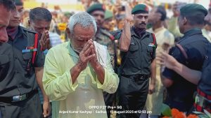 गगनचुंबी नारों के बीच शहीद हवलदार अंकित उर्फ धीरज का पार्थिव शरीर चारों तरफ बाढ़ के पानी से घिरा पैतृक गांव भागलपुर जिला रंगरा प्रखंड के चापर पहुंचा.