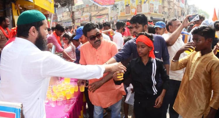 शहर में जुमे की नमाज अदा करने के बाद मुस्लिम भाइयों ने भगवा क्रांति में शामिल युवकों को कड़ी धूप में सूख रहे गले को जल पिला कर भाईचारे की नजीर पेश की. वहीं, शहर के तातारपुर मस्जिद, खानकाह शहबाजिया शाहजहानी मस्जिद, खलीफाबाद शाही मस्जिद और शाहजगी ईदगाह में जुमे की नमाज का वक्त कुछ इस तरह निर्धारित किया गया था कि भगवा क्रांति की शोभायात्रा में कोई बाधा उत्पन्न ना हो. मालूम हो कि चैत नवरात्र की सप्तमी पर भगवा क्रांति की ओर से घंटाघर चौक टीचर्स ट्रेनिंग कॉलेज परिसर से श्रीराम महाशोभायात्रा निकाली गयी थी. शोभायात्रा में 10 हजार से अधिक श्रीराम भक्त शामिल हुए, शहर के मुख्य मार्गों पर जनसैलाब उमड़ पड़ा.