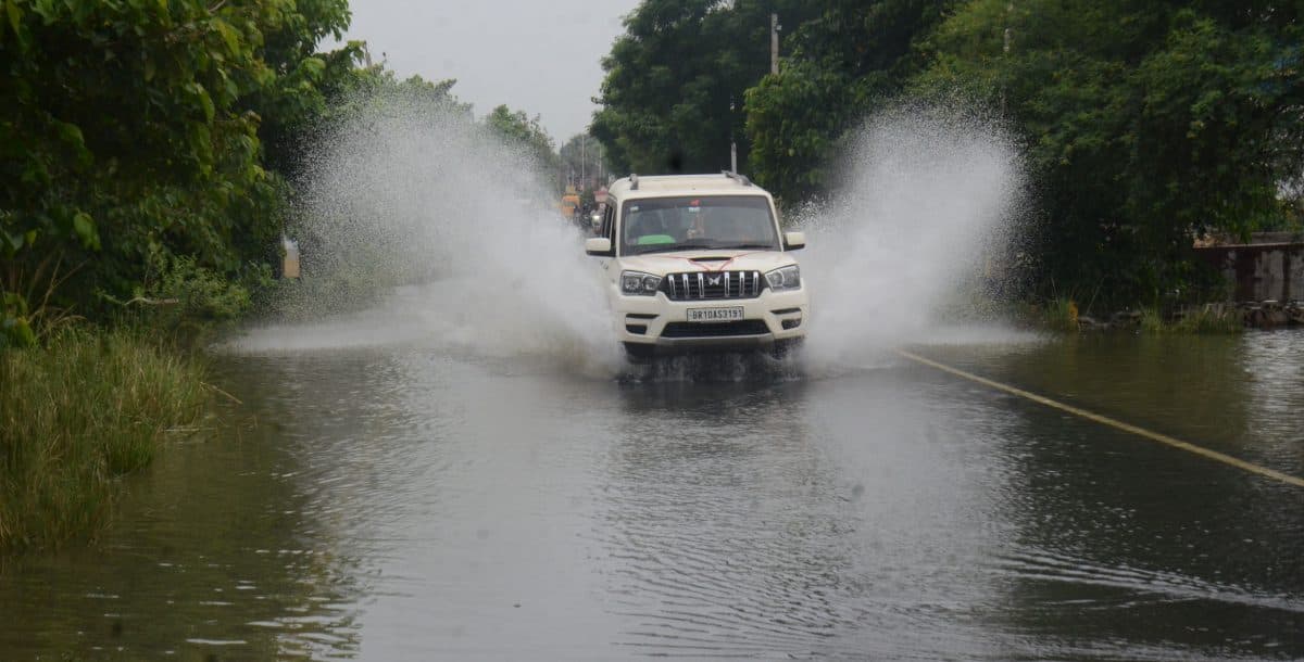 भागलपुर में NH-80 पर चढ़ा पानी, यूनिवर्सिटी में चल रही नाव