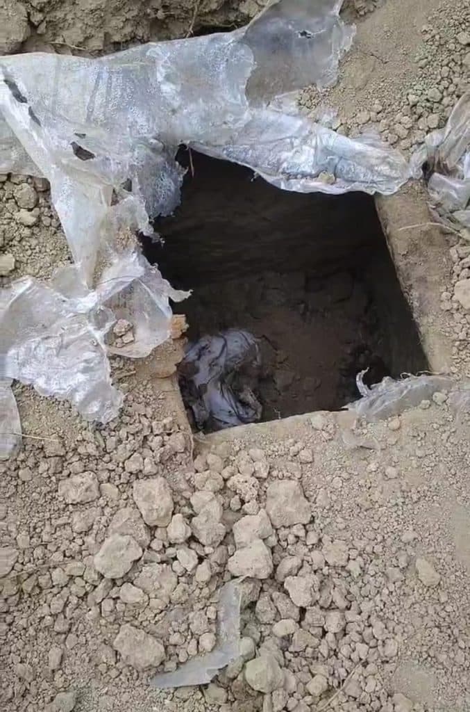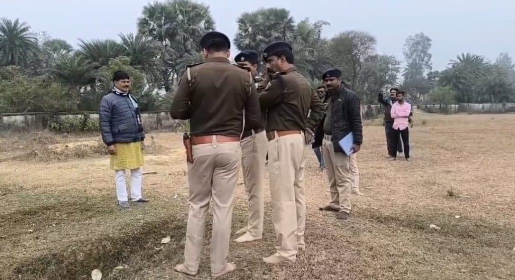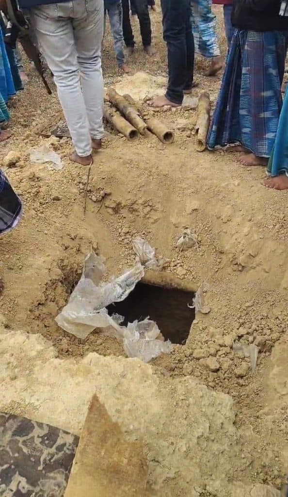 खोदा हुआ कब्र और मौके पर मौजूद पुलिस