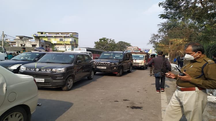 जाम हटाने के लिए दिन भर पुलिस रही परेशान