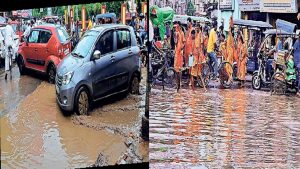 भागलपुर में जब जलापूर्ति पाइप बिछाने के लिए सड़क काटने के बाद उसे समय से रिस्टोर नहीं किया गया तो आधे घंटे की बारिश ने ही लोगों को जमकर परेशानी में डाला. कहीं बाइक सवार गिरते नजर आए तो कहीं जाम की स्थिति बनी रही.