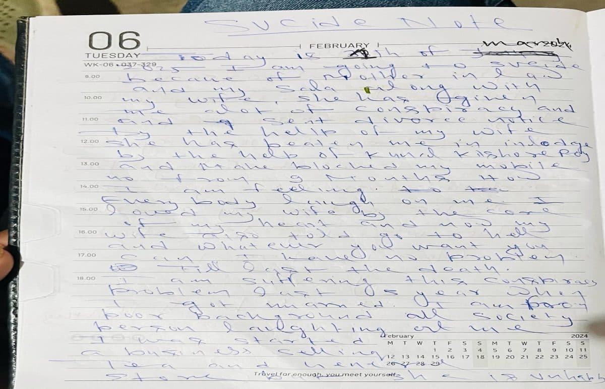 आठ पन्ने के सुसाइड नोट में बयां किया दर्द