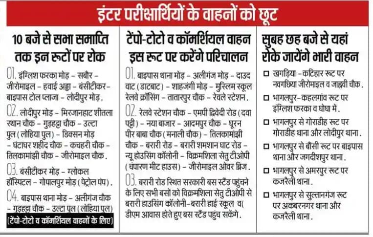 1 फरवरी को बदली रहेगी भागलपुर की ट्रैफिक व्यवस्था, इन रूटों पर गाड़ियों को नहीं मिलेगी एंट्री...