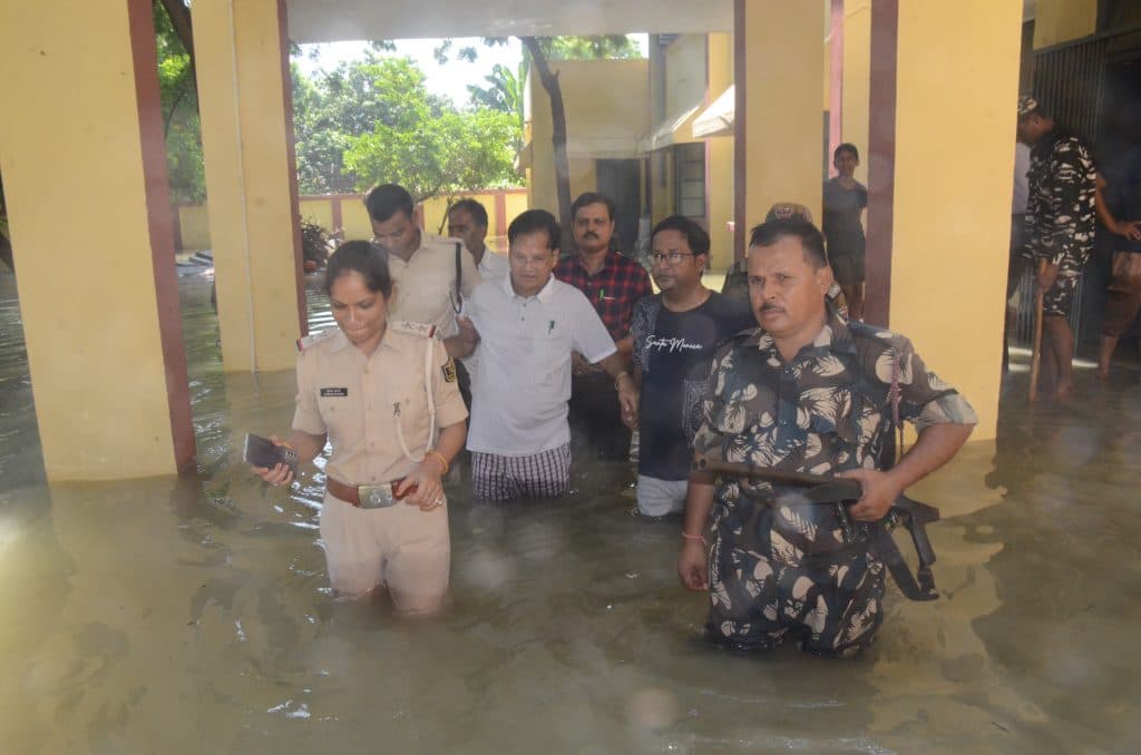 आदमपुर बैंक कॉलोनी में सड़क पर पानी बह रहा है. मोहल्ले के लोग इस दौरान परेशानी का सामना कर रहे हैं. वहीं गोराडीह -नदियामा पथ पर भी गंगा का पानी चढ़ा हुआ है. लोग जान हथेली पर रखकर इस सड़क से आना-जाना कर रहे हैं. गंगा का जलस्तर बढ़ने से बाढ़ की समस्या अब विकराल रूप लेती जा रही है. शहर का आलम कुछ ऐसा है कि सीएमएस हाई स्कूल कैंपस जलमग्न है. शनिवार को पानी और फैल गया है. कैंपस का पानी अब मुख्य गेट के करीब पहुंच गया है.