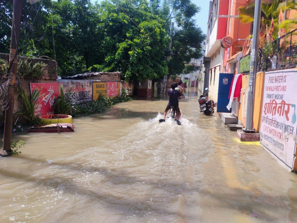 शहर में घुसा बाढ़ का पानी, जलमग्न हुआ CMS स्कूल कैंपस