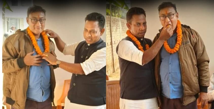 रवि प्रकाश शर्मा को बधाई देते विधायक ललन कुमार