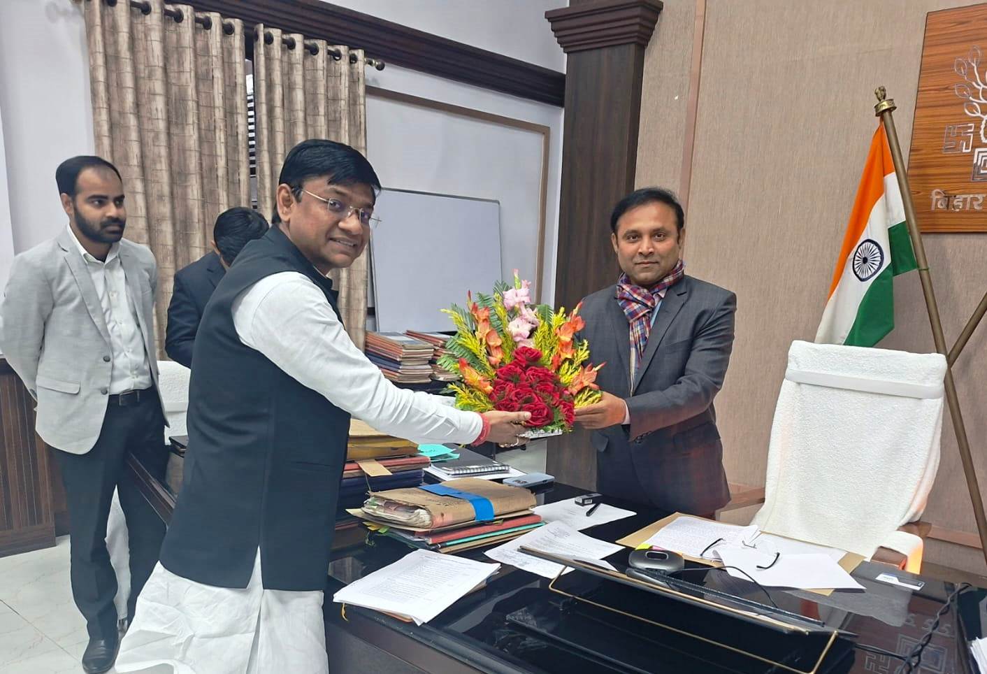 सुलतानगंज नगर परिषद के सभापति राजकुमार गुड्डू ने डीएम डॉ नवल किशोर चौधरी से शिष्टाचार मुलाकात की. सभापति ने जिलाधिकारी को नव वर्ष की शुभकामनाएं दीं और नगर क्षेत्र के समग्र विकास को लेकर विस्तृत चर्चा की. बैठक में जनहित योजनाओं के प्रभावी क्रियान्वयन, नगर परिषद क्षेत्र के विभिन्न वार्डों में बुनियादी सुविधाओं के विस्तार सहित नप से जुड़ी समस्याओं, आवश्यकताओं और प्रस्तावित विकास कार्यों की जानकारी दी. सभापति ने नमामि गंगे घाट पर श्रद्धालुओं की सुविधा के लिए बहुमंजिला इमारत के निर्माण कार्य को शीघ्र प्रारंभ कराने का आग्रह किया. मुख्य पार्षद ने बताया कि जिस पर जिलाधिकारी की ओर से सकारात्मक आश्वासन मिला. आगामी श्रावणी मेला को लेकर बेहतर और सुव्यवस्थित व्यवस्था पर चर्चा हुई. जिलाधिकारी ने इस बार श्रावणी मेला की तैयारी समय से पूर्व शुरू करने की बात कही. सभापति ने बताया कि लोकल फॉर वोकल के तहत स्थानीय उत्पादों को बढ़ावा देने की दिशा में भी जिलाधिकारी ने पहल करने का भरोसा दिया है. मुख्य पार्षद ने कहा कि अजगैबीनगरी को एक बार फिर बड़ी सौगात मिलने की संभावना है. उन्होंने कहा कि मौनी अमावस्या को देखते हुए गंगा घाट पर श्रद्धालुओं की सुरक्षा के लिए बांस-बैरिकेडिंग लगाने का निर्देश दिया गया है. नगर परिषद की ओर से कांवरियों की सुविधा के लिए गंगा घाट पर अलाव और टेंट की व्यवस्था की जायेगी. गंगा में सुरक्षित स्नान को लेकर बांस-बैरिकेडिंग मौनी अमावस्या से माघ पूर्णिमा तक प्रभावी रहेगी. सभापति ने निवर्तमान एसएसपी हृदयकांत के स्थानांतरण के बाद उनसे मुलाकात कर बाबा अजगैबीनाथ मंदिर का प्रतीक चिन्ह भेंट किया. उन्होंने कहा कि एसएसपी के कार्यकाल में बेहतर पुलिसिंग और कानून-व्यवस्था को लेकर जिले के लोग उन्हें लंबे समय तक याद रखेंगे.