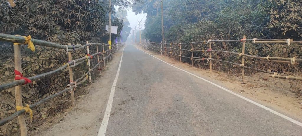 सड़क के दोनों तरफ बैरिकेडिंग की गयी