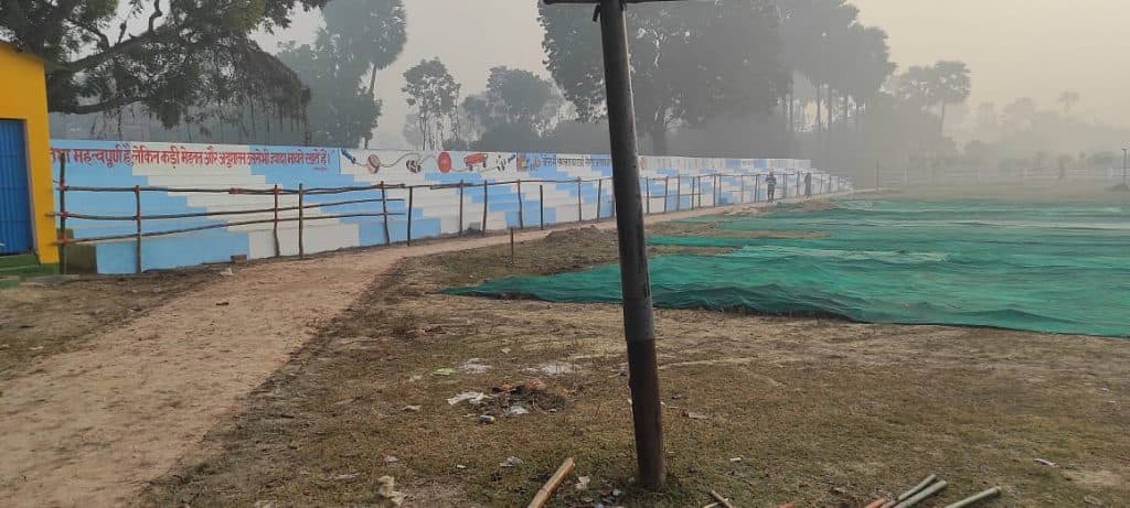 बहादुरपुर स्कूल के पीछे खेल मैदान का पूरा लुक ही बदल चुका है. इसे एक खूबसूरत स्टेडियम की तरह सजाया गया है. सीढ़ियों की मरम्मत की गयी है और उसे पेंट किया गया है.