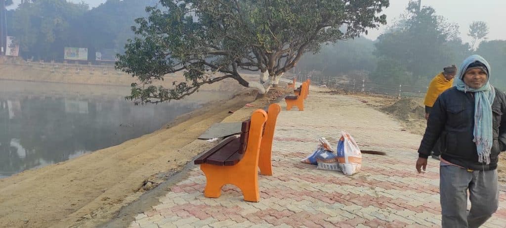 बहादुरपुर स्कूल के बगल में करीब डेढ एकड़ में फैले तालाब का भी सौंदर्यीकरण कर दिया गया है. यहां तालाब किनारे सीढ़ियां भी बनायी गयी है. बैठने के लिए सीमेंट के बेंच वगैरह लगाए गए हैं. यहां भी तैयारी अब अंतिम रूप ले रहा है.