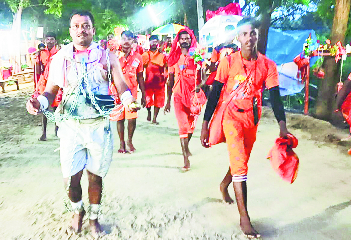 शरीर को जंजीर से जकड़ कर कांवरिया चला बाबाधाम